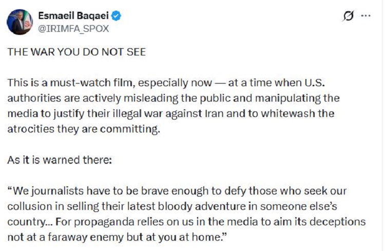 این فیلمی است که باید این روزها تماشا کرد؛ در زمانهای که مقامات آمریکایی فعالانه در صدد گمراهسازی افکار عمومی و دستکاری در رسانهها هستند تا جنگ غیرقانونی خود علیه ایران را توجیه کرده و جنایاتشان را سفیدشویی نمایند.