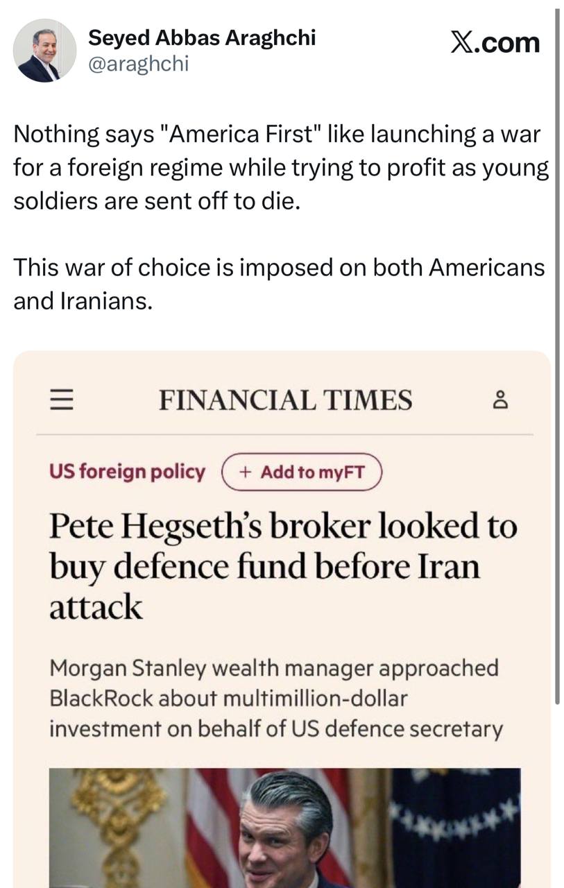 Nothing says "America First" like launching a war for a foreign regime while trying to profit as young soldiers sent off to die