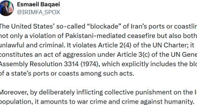 محاصره تنگه هرمز از سوی آمریکا نقض آتش بس است