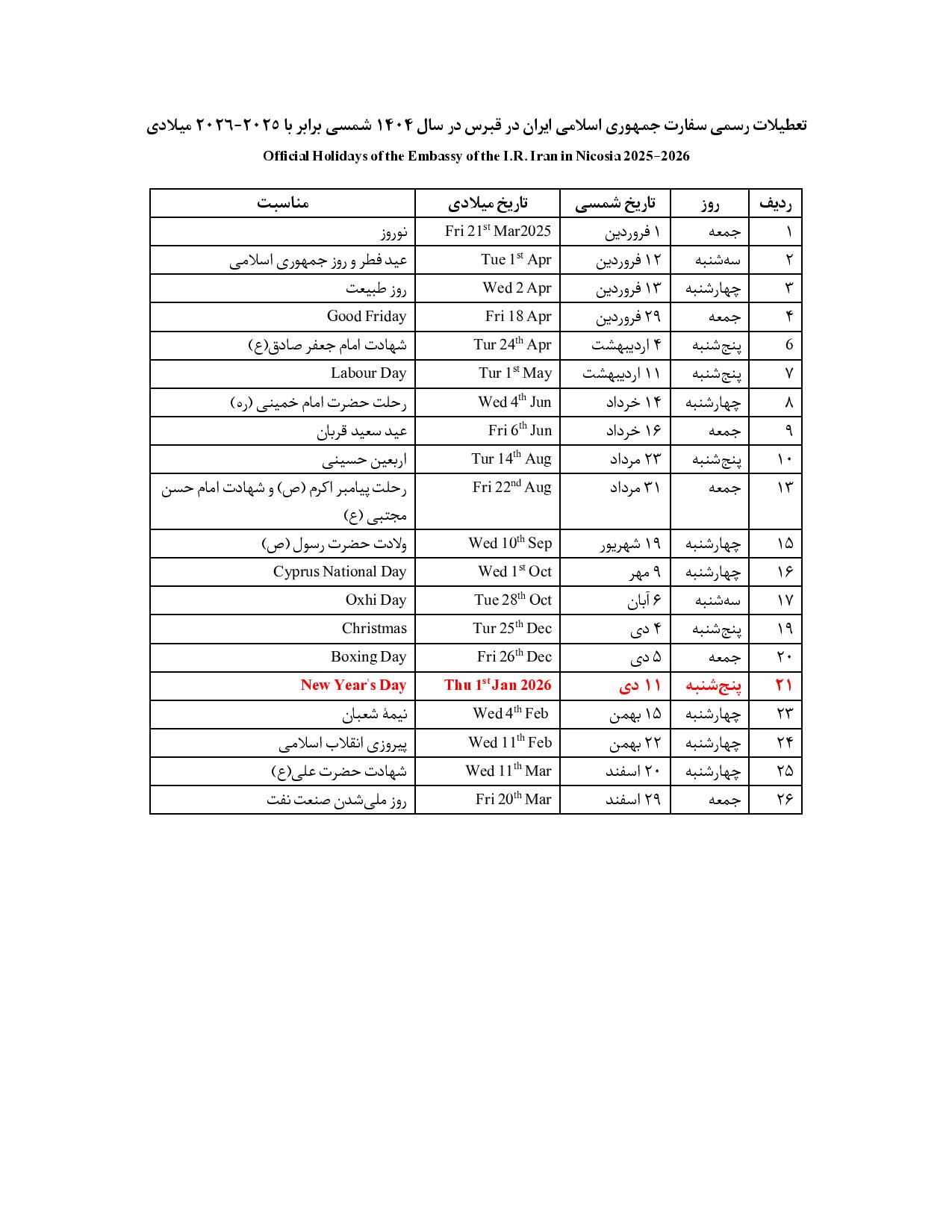 نعطیلات 1404